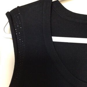 Reba black sleeveless scoop neck knit top. The shoulders have black rhinestones on the front and back. 60% cotton and 40% rayon.