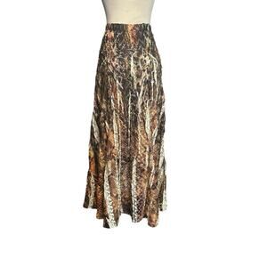 Reba brown yellow print pleated pull on boho maxi skirt size Large