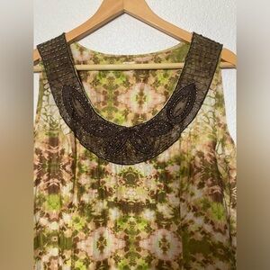 Reba size 12 sleeveless tiered maxi dress fairy boho beaded neck green brown