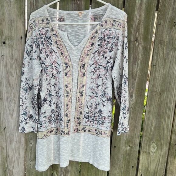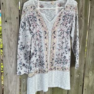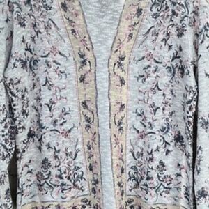 Reba Ligthtweight Ivory Floral Knit Sweater Metallic Embellishments Size Large