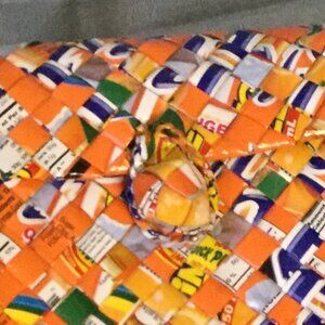 Rebags Half the Sky Designs woven shoulder bag made from recycled juice containers. Bright orange and multi colors with button and loop closure. Has adjustable strap so it can be worn as a cross-body bag also. Artsy, boho style, perfect for vacation. Handmade in the Philippines. Pre-owned in excellent condition. Super cute colorful bag for spring and summer. See photos for measurements.