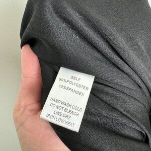 Does have a snag on front as shown. Polyester and spandex blend.