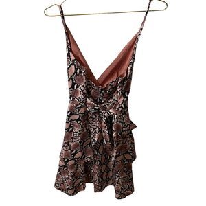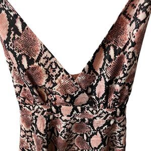 Rebdolls Snake Print Pink Double V Halter Skater Mini Spaghetti Strap Dress
