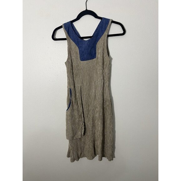 Rebe By Debra Weiss Tan Sleeveless Gingham Dress Size XS