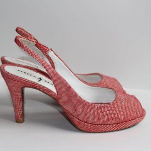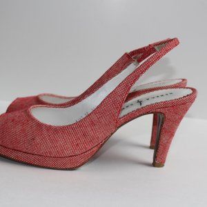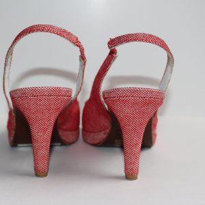 red & white check, slingback heels. Never worn, the bottom was scuffed up so they wouldn't be slick.