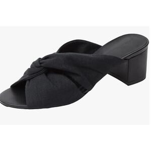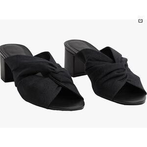 Rebecca Allen Twist Heels 10 Black Linen NWOT Sandals Mules Slip On Travel