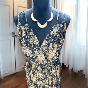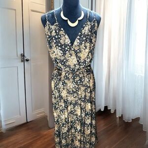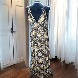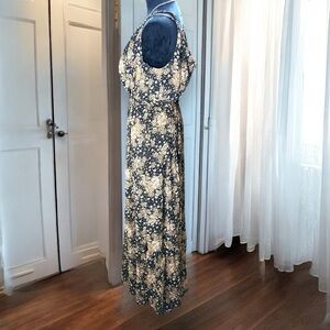 Rebecca B. Floral Maxi Dress Women's Size 10 Black Tan Boho Sleeveless Wrap