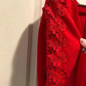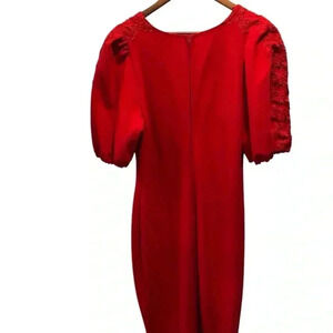 Rebecca B Size 14 Red Pin Up Sheath Dress Puff short sleeves crochet lace