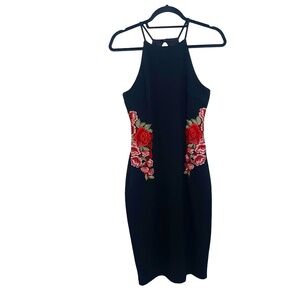 Rebecca B Women's Cocktail Mini Roses Embroidered Halter Dress Sz 8 NWT