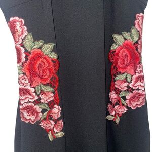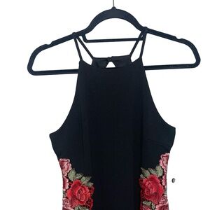 Rebecca B Women's Cocktail Mini Roses Embroidered Halter Mini Dress Sz 8 NWT, Keyhole opening in the back, Back zipper & cloth button closure, stretchy.