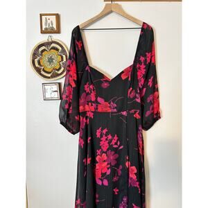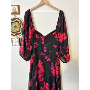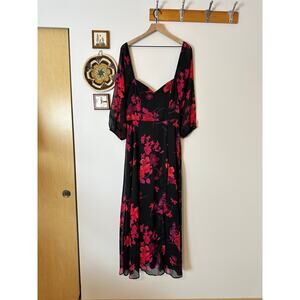 Rebecca B. Women’s Sz 12 3/4 Sheer Sleeve Floral Maxi Dress Black Red Formal