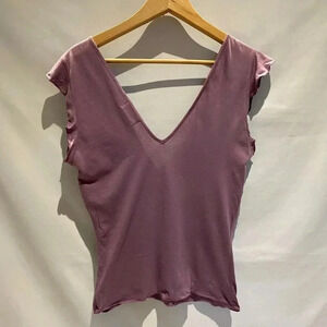 Ruffle cap sleeve tee with mesh and intricately patterned sequins from Rebecca Beeson. Size 3, large (runs on the smaller side). Very soft cotton. Small hole in back shoulder.