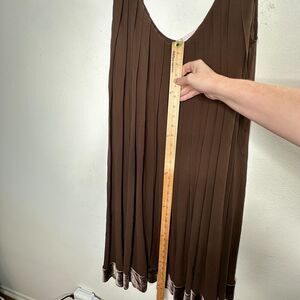 Rebecca Chocolate Flowy Sheer Pleated Round Neck Sleeveless Velvet Hem Dress 2