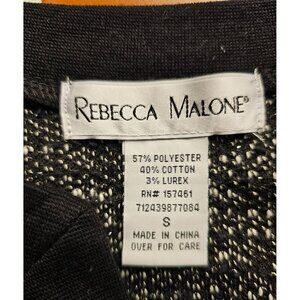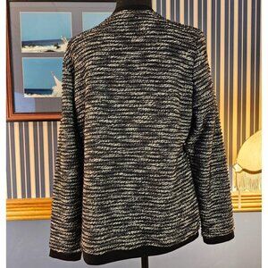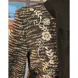 Rebecca Malone Black & White Embroidered Mock Loose Fit Cardigan Sweater, Size S