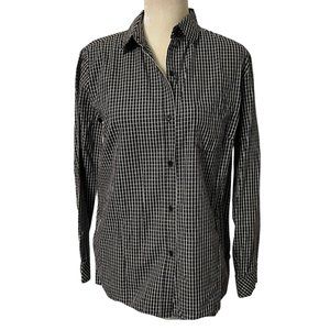 Rebecca Malone Button Up Shirt Small Black White Checkered Long Sleeve Collared