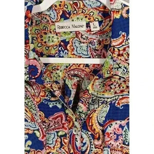 Rebecca Malone Button Up Shirt Womens Large Long Roll Tab Sleeves Vibrant Colors