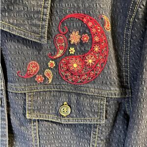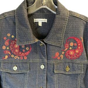 Rebecca Malone Denim Button-up Shirt, Paisley Embroidery, women's L