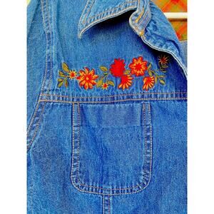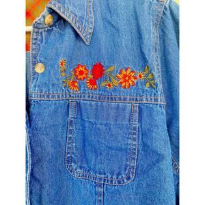 Rebecca Malone Embroidery Fall Autumn Flower Flannel Denim Button Up Shirt Large