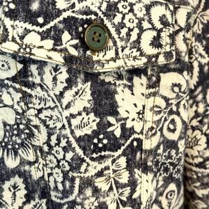 Rebecca Malone Floral Denim Blue & White Button Woman’s Blouse Shirt L Excellent