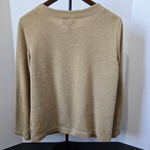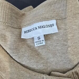 Rebecca Malone Knit Cardigan Sweater Button Front Pockets Tan Neutral Small S
