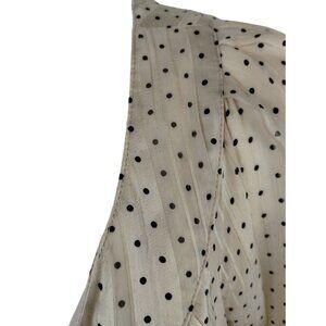 This blouse tells a tale of elegance with its delicate beige fabric adorned with charming black polka dots. Designed by Rebecca Malone, it offers a loose, comfortable fit, perfect for the confident woman who appreciates both style and comfort. The front tie detail adds a touch of playful sophistication, making it a versatile piece for any wardrobe.