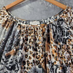 Rebecca Malone women’s blouse, size 2X 🖤🤎 Features a bold mixed animal print design, long sleeves, and lightweight stretch polyester-spandex fabric for comfort and style. Perfect statement piece for workwear, casual outings, or layering ✨