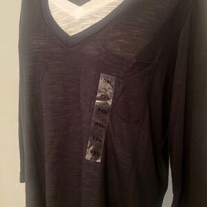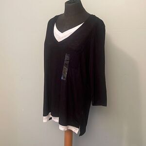 Rebecca Malone Women's Black 3/4 Sleeve Faux Layered Top PXL NWT