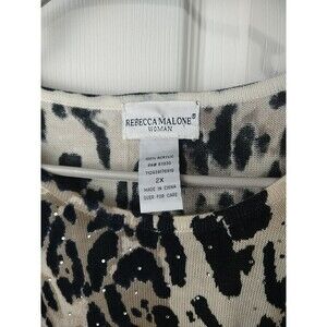 Rebecca Malone woman 2X lightweight pullover rhinestone animal tight knit 3/4 sleeve sweater in excellent condition no flaws