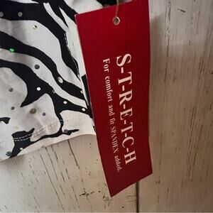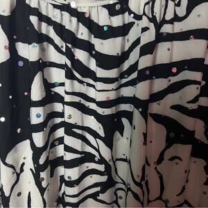 Rebecca Malone Women’s Black and White Shimmer Stretch 3/4 Sleeve Print Blouse