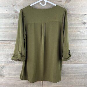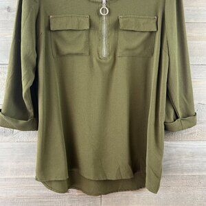 Rebecca Malone Womens Blouse 3/4 Sleeve Zip Neck Pockets Versatile Modern Large