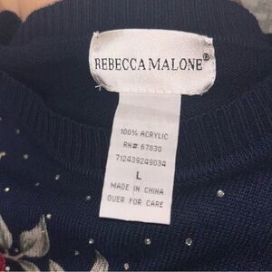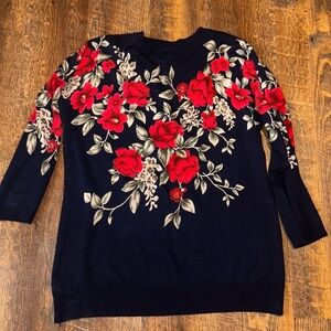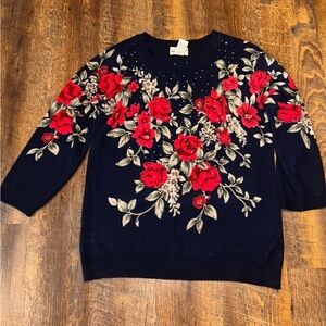 Rebecca Malone Womens Blue & Red Roses Long Sleeve Pullover Sweater Size L