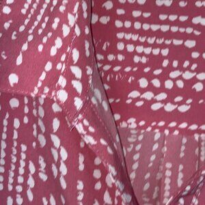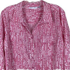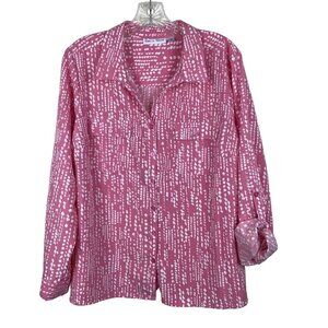 Rebecca Malone Womens Pink & White Abstract Print Blouse Size L L/S Roll Tab