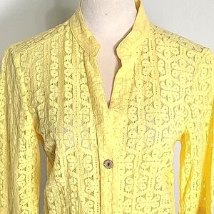 Rebecca Malone Yellow Lace Buttondown Top, Size Medium