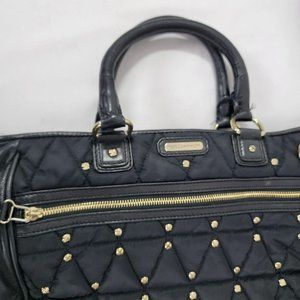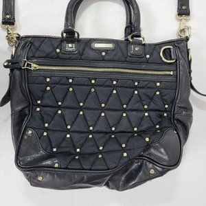 Rebecca Minkhoff Large Black Leather & Fabric Purse Bag Gold tone screw studs