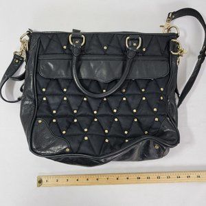 Item: Rebecca Minkhoff Large Black Leather & Fabric Purse Bag Gold tone screw studs