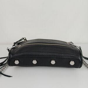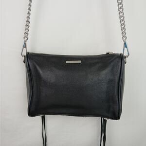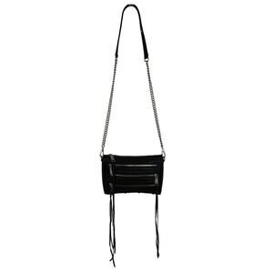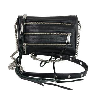 Rebecca Minkoff 4 Zip Black Pebbled Moto Crossbody Silver Hardware Chain