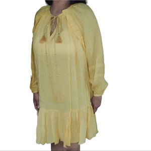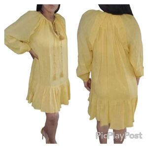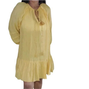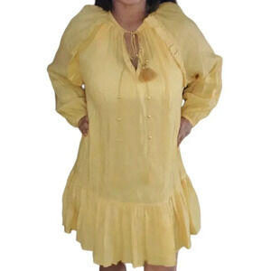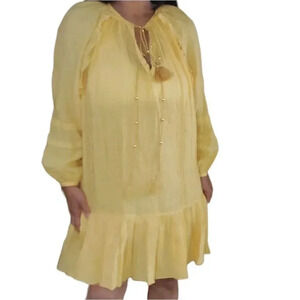 Rebecca Minkoff Charlize Dress, In Yellow . Size: Small. This Beautiful Yellow Dress is 75% Rayon and 25% Nylon. Very comfortable and great for a night out!