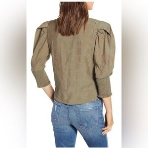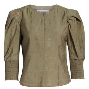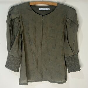 Rebecca Minkoff ARMY GREEN Geneva Puff Sleeve Blouse Size Small