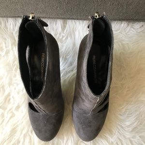Rebecca Minkoff Acadia Gray Suede Cut Out Round Toe Heeled Ankle Booties