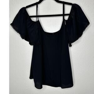 Rebecca Minkoff Aida Black Cold Shoulder Spaghetti Strap Blouse Top Small