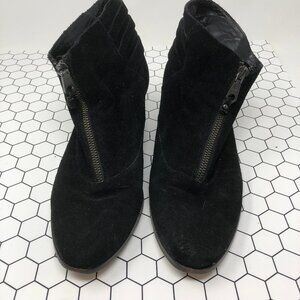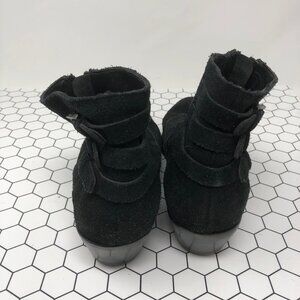 Rebecca Minkoff Alex Black Suede Three 3 Buckle Booties Top zipper accent boots. Size 9. Used condition with some wear around sole. Please see photos.