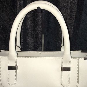 Measurements are depicted above. Detachable strap. Beautiful silver tone hardware/trim pieces. The bag has a magnetic bend over strap closure. The inner liner is a beautiful black and cream design. Middle zippered compartment. One other zipper compartment. 4 inner compartments in total. This neutral shade of grey will sass or class anything you want. Super minimal and super chic.