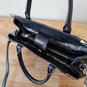 Rebecca Minkoff Amorous Satchel Black Leather Quilted Bowler Bag Handbag Luxe
