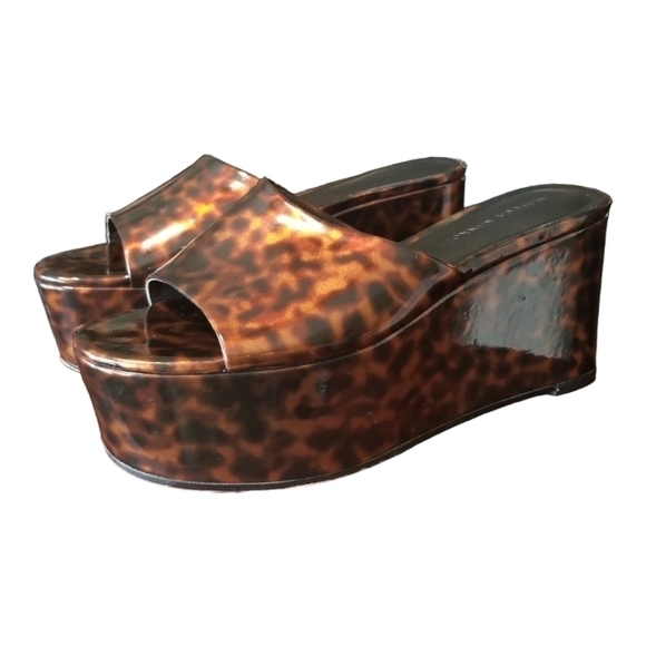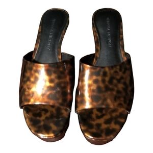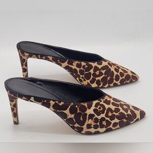 These Beautiful Rebecca Minkoff Animal Print Patent Leather Mules is in excellent condition. Size 6