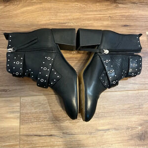 Rebecca Minkoff Ankle Boots 7m Black Leather Buckle Studded Biker Moto