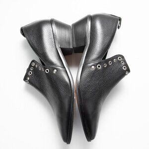Rebecca Minkoff Annette Bootie Studded Ankle Boot Leather Black Size 8.5. Chic and edgy, these booties elevate any look with their studded details and sleek silhouette. Crafted from genuine pebble-grain leather, they’re designed for both comfort and style — perfect for pairing with jeans, skirts, or dresses.