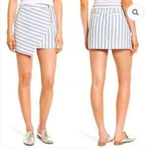 Rebecca Minkoff Asymmetrical Wrap Mini Skirt Sz XS Stripes Blue Linen Cotton