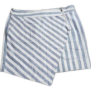Rebecca Minkoff Asymmetrical Wrap Mini Skirt Sz XS Stripes Blue Linen Cotton Zipper