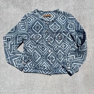 Rebecca Minkoff Aztec Bleach Print Denim Jacket Frayed Collar SAMPLE SHOW