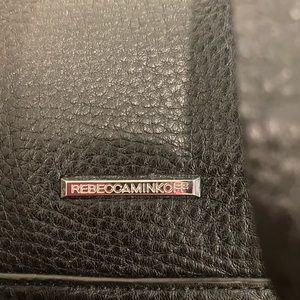 Cowhide leather. Drawstring top closure with lobster clasp and interior magnetic closure, 9-14" shoulder strap drop. Color: Black w/ Silvertone.